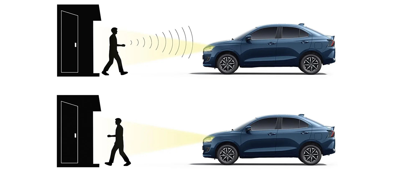 This feature enhances convenience and safety during nighttime. When the vehicle is unlocked using the remote control, the low beams automatically turn on and stay illuminated for 10 seconds (customizable) to guide the driver to the vehicle. Similarly, after turning off the engine, flashing the headlamps and opening the driver’s door (in any order) activates the Follow-Me-Home function, keeping the low beams on for another 10 seconds (customizable) to light the way ahead after exiting.